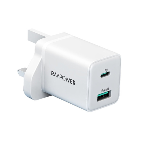 شاحن جداري راف باور 20 واط بمنفذ تايب سي ومنفذ يو اس بي + كي...